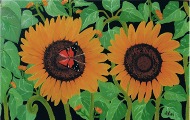 3. Castagne e vino: Olio su tela cm.70X50 4. I due girasoli: Olio su tela cm.70X40