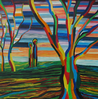 2. Il cammino degli alberi: olio e vari materiali su tela cm. 102x102 -
