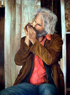 3. Suonatore di armonica a bocca: olio su tela cm. 60 x 80