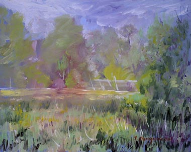 2. La restera lungo il fiume Sile: olio su pannello cm. 54,5x34 - 2005