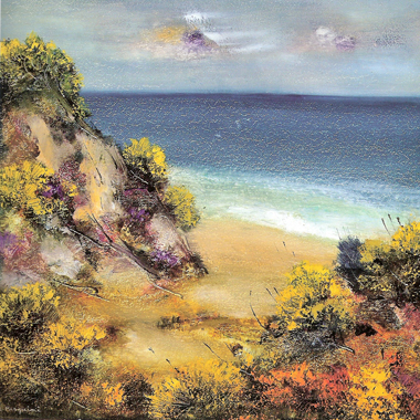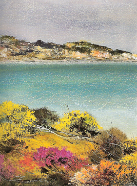 Più osserviamo i dipinti esposti in questa mostra dal tono raffinato, e più ci rafforziamo nella convinzione che la vera espressione artistica di questa rassegna è la Toscana nel suo insieme e Luciano Pasquini è il suo narratore. Le dolci colline punteggiate da casolari, apparentemente silenti, i borghi antichi che ricordano all’osservatore distratto il lavoro nei campi, testimoni di una civiltà, oggi purtroppo obliata, mutata in mostruose ciminiere fumanti e dispensatrici di fatali veleni, i gialli cespugli di ginestre in prossimità del mare a coglierne il respiro che profuma di mistero, le scogliere che precipitano, a volte ripide, a volte in dolce declivio nel mare spumoso, su spiagge ridenti, e nella lontananza, di orizzonti che non limitano lo sguardo, ma invitano all’immaginazione di altre terre, forse vicine, forse lontane, è evidente il richiamo alla scoperta, all’avventura dell’immaginare.