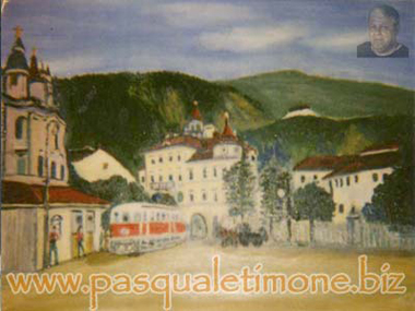 6. Bolzano 1907-Stazione di partenza del trenino Renon: olio su tela