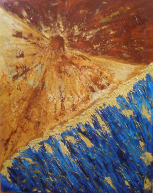 E L'acqua inonḍ il deserto: olio e strucco su tela