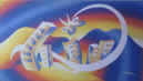 1. In alto sulla cittą: acrilico su masonite cm. 90x50 - 1994